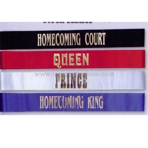 Description: Stock 3" x 72" Sash with stock Queen title. Ribbon Colors are Red, White Black or Blue with gold imprint
